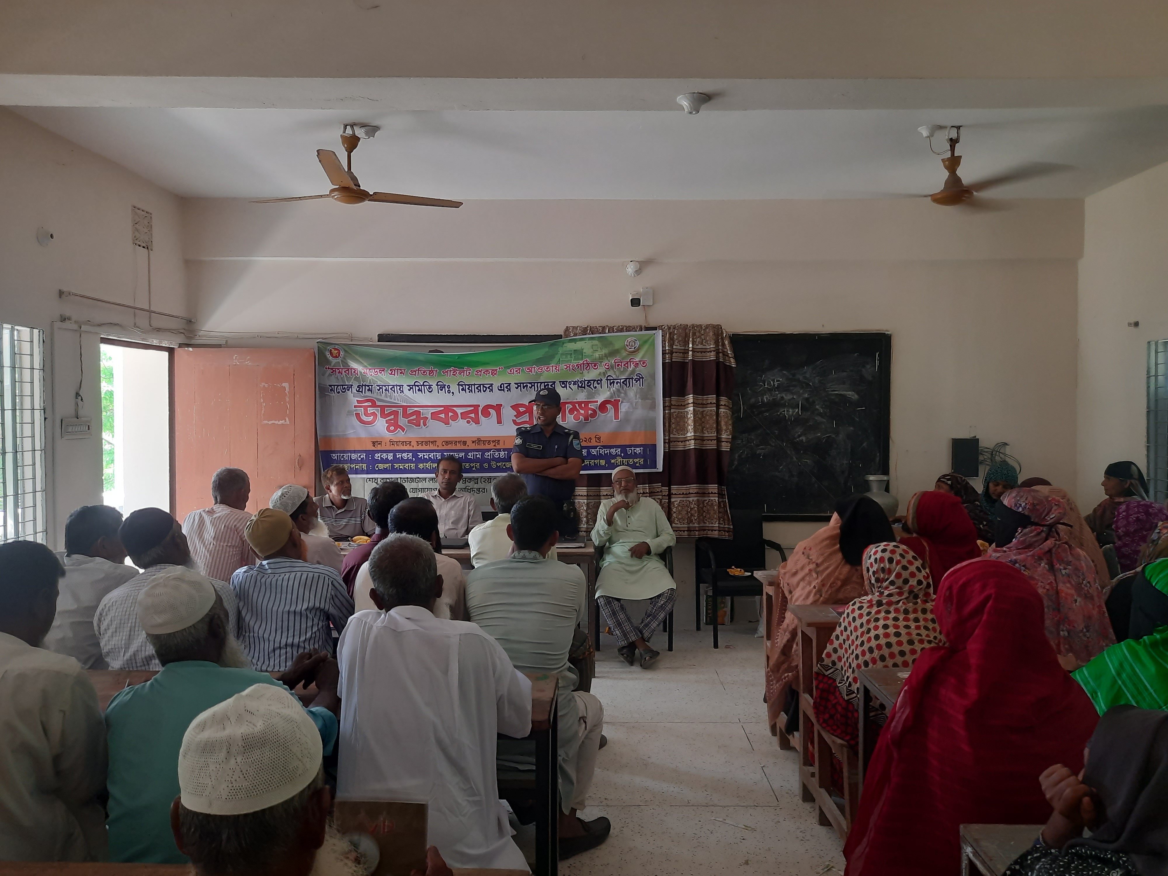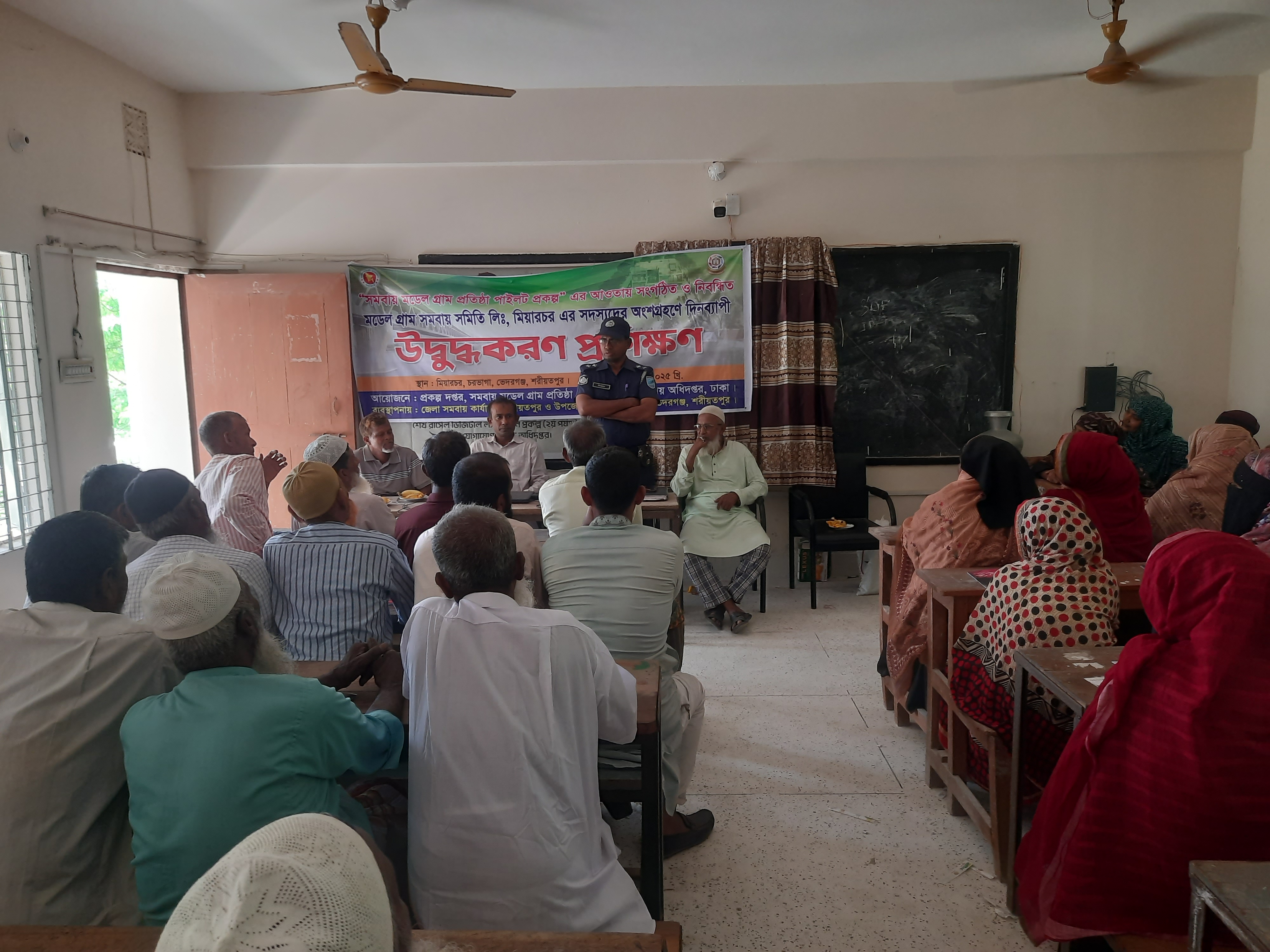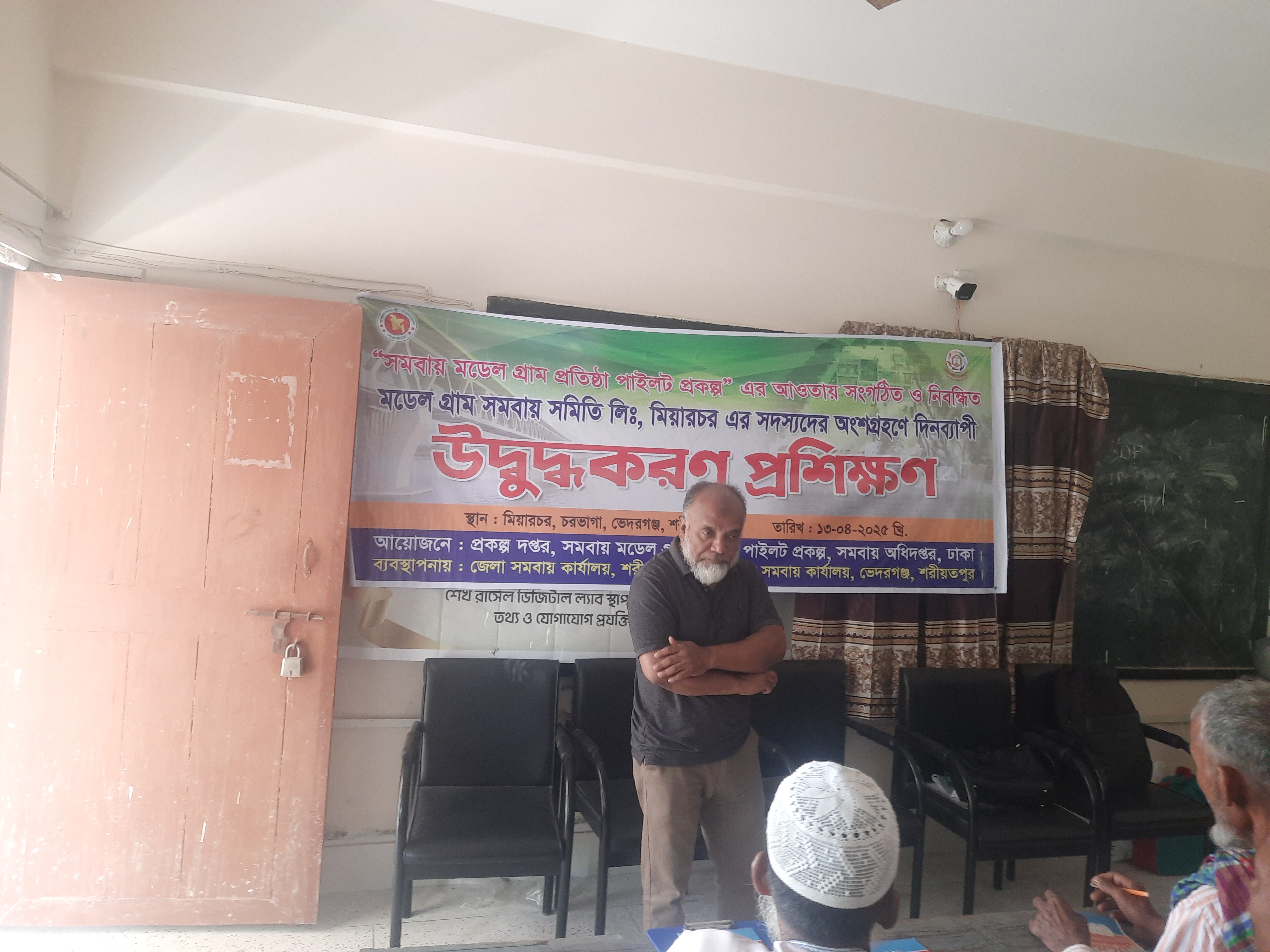 ১৩-০৪-২০২৫ খ্রি. তারিখ রোজ রবিবার সমবায় অধিদপ্তর, ঢাকা কর্তৃক বাস্তবায়িত সমবায় মডেল গ্রাম প্রতিষ্ঠা পাইলট প্রকল্পের আওতায় সংগঠিত ও নিবন্ধিত মডেল গ্রাম সমবায় সমিতি লিমিটেড, মিয়ারচর, ভেদরগঞ্জ, শরীয়তপুর এর ৬০ জন সদস্যের অংশগ্রহণে দিনব্যাপী উদ্বুদ্ধকরণ প্রশিক্ষণ কোর্স অনুষ্ঠিত হয়েছে। প্রশিক্ষণ কোর্সে রিসোর্স পারসন হিসেবে উপস্থিত ছিলেন জনাব ডাক্তার মোঃ আতিকুর রহমান মিয়া, উপজেলা প্রাণি সম্পদ কর্মকর্তা, ভেদরগঞ্জ, শরীয়তপুর ও ভারপ্রাপ্ত কর্মকর্তা, সখিপুর থানা, এর প্রতিনিধি। উপজেলা প্রাণি সম্পদ কর্মকর্তা, ভেদরগঞ্জ, শরীয়তপুর মহোদয় গবাদী পশু পালন পদ্ধতি, রোগ ও তার প্রতিকার এবং পশু পালনে আধুনিক প্রযুক্তির ব্যবহার সম্পর্কিত বিষয়ে আলোচনা করেন। ভারপ্রাপ্ত কর্মকর্তা, সখিপুর থানা, এর প্রতিনিধি পুলিশ বিভাগের সেবা ও সেবাদান পদ্ধতি সম্পর্কে আলোচনা করেন। অনুষ্ঠিত প্রশিক্ষণ কোর্সে আলোচ্য প্রকল্পের প্রকল্প পরিচালক জনাব মোহাম্মদ হেলাল উদ্দিন, যুগ্ম-নিবন্ধক, সমবায় অধিদপ্তর, ঢাকা মহোদয় ভার্চুয়ালি অংশ গ্রহণ করেন। তিনি ঋণের সঠিক ব্যবহার, নিয়মিত সঞ্চয় আমানত জমাদান, নিয়মিত ঋণের কিস্তি প্রদান ও আধুনিক প্রযুক্তি -পদ্ধতির ব্যবহার করে উৎপাদন বৃদ্বি সম্পর্কে গুরুত্বপূর্ণ ও দিক নির্দেশনামূলক আলোচনা করেন। অনুষ্ঠিত প্রশিক্ষণ কোর্সের কোর্স পরিচালক হিসেবে দায়িত্ব পালন করেন জনাব মোহাম্মদ মোফাজ্জল হোসেন, উপজেলা সমবায় কর্মকর্তা, ভেদরগঞ্জ, শরীয়তপুর।